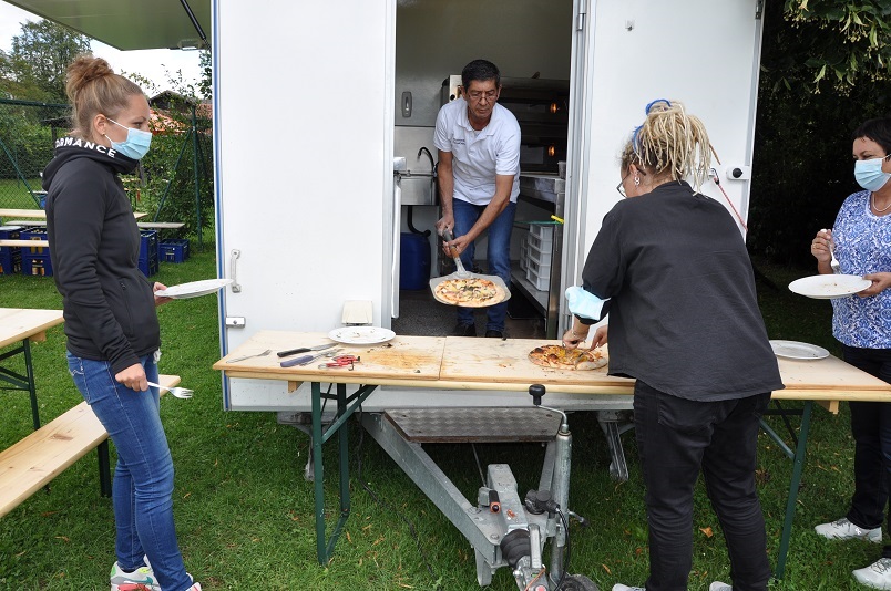 Wir im Ertlhof, nahmen die Lockerungen der Corona-Maßnahmen zum Anlaß, um dies zu Feiern, und wieder mal etwas Normalität im Haus zuzulassen. Um nicht dutzende Pizzaschachteln entsorgen zu müssen, holten wir uns Giovannis Pizzamobil in den Garten. Von Giovannis PIzzamobil bekamen wir die Pizzen ofenfrisch und saftig direkt auf den Teller. Eine super Idee und eine willkommene Abwechslung für die Bewohner und Personal nach Monaten der Einschränkung durch Corona .