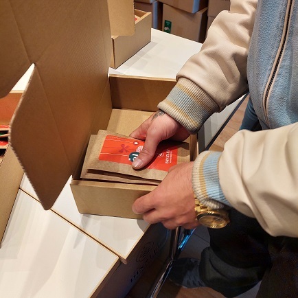 Der Advent ist bald da, und somit hatte die Firma Dinzler Kaffee einen Großauftrag für uns. Wir verpackten im Rahmen der Arbeitstherapie mehrere hundert Advendtskalender. Das heißt, es wurden von uns die verschiedenen Komponenten zusammengestellt und in den vorgesehenen Geschenkkarton eingepackt. Der Inhalt sind 24 Kaffeetütchen mit Schnur und Klippsis zum Aufhängen. Ein wunderbarer Adventskalender für große Kinder und Kaffeeliebhaber.