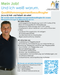 Wir suchen einen Qualitätsmanagementbeauftragten für unsere Pflegeeinrichtungen in Wasserburg am Inn in Voll- oder Teilzeit.